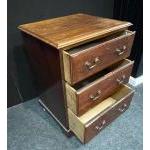 A sturdy three drawer bedside set of drawers with original handles - 18" across x 12" depth x 2ft height approx