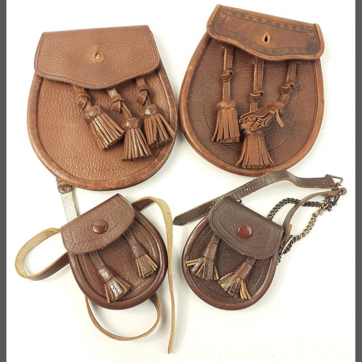 Two quality leather day sporrans plus two children's one by Morrison's of the Lawnmarket with belts