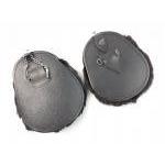 A black fur dress sporran with 6 white tassels and belt, and one other black fur dress sporran with belt