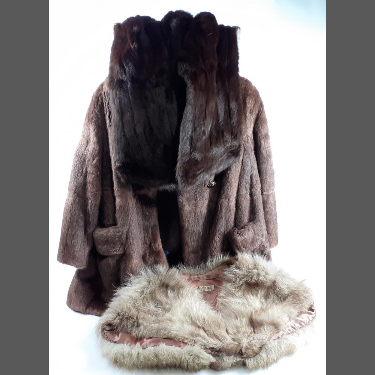 A CLASSY ladies fur coat approx 40" chest, approx 32" long, in lovely condition plus 2 stoles one labelled MARCUS