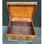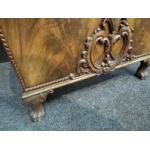 A CHARMING c1930's lidded box with detailed hand-carved scroll-work on four paw feet supports - 25"width x 18" depth x 18" height