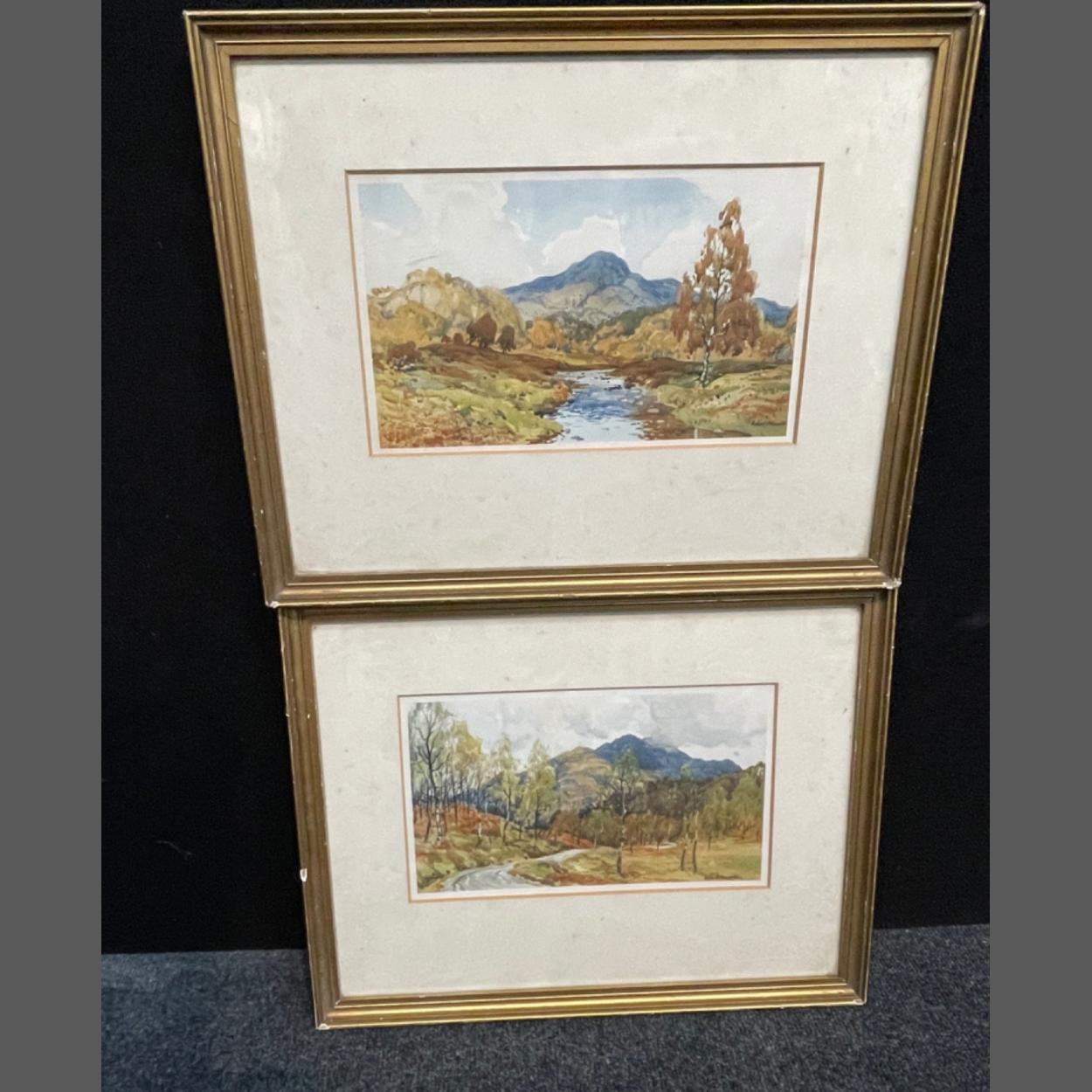 Two original ROBERT HOUSTON (1890-1942) framed watercolours of river & mountain scenes - dimensions 12.5" x 7.5" approx. The artist has paintings hanging in The British Museum.