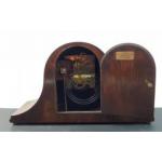A vintage wooden mantle clock. TIMES MONEY stamped movement. Complete with pendulum and key. 41cm across the case.