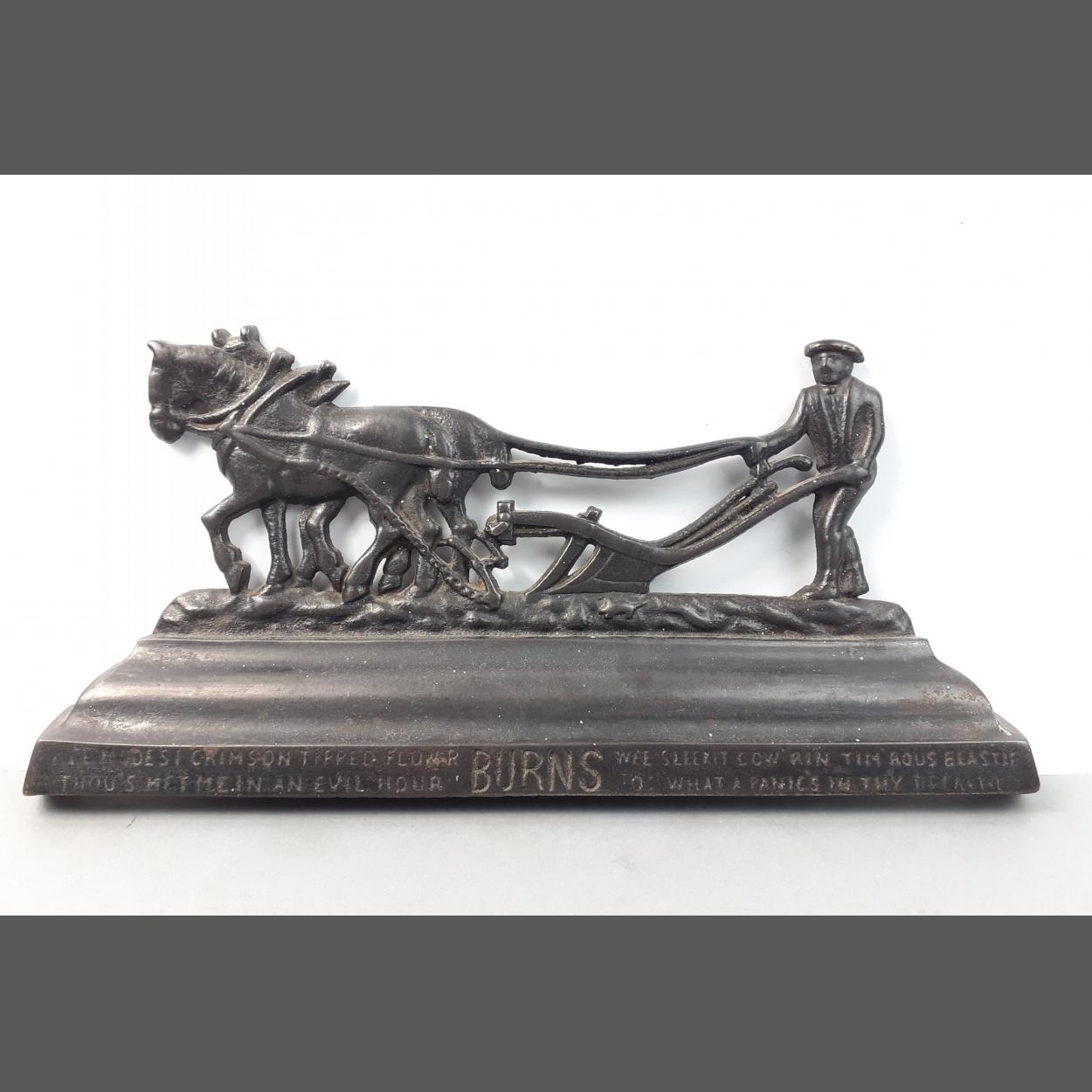 A GREENLEES GLASGOW cast iron Robert Burns door stop. 30cm across.
