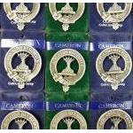A tin containing 20 Carrick Celtic Jewellery Clan CAMERON badges