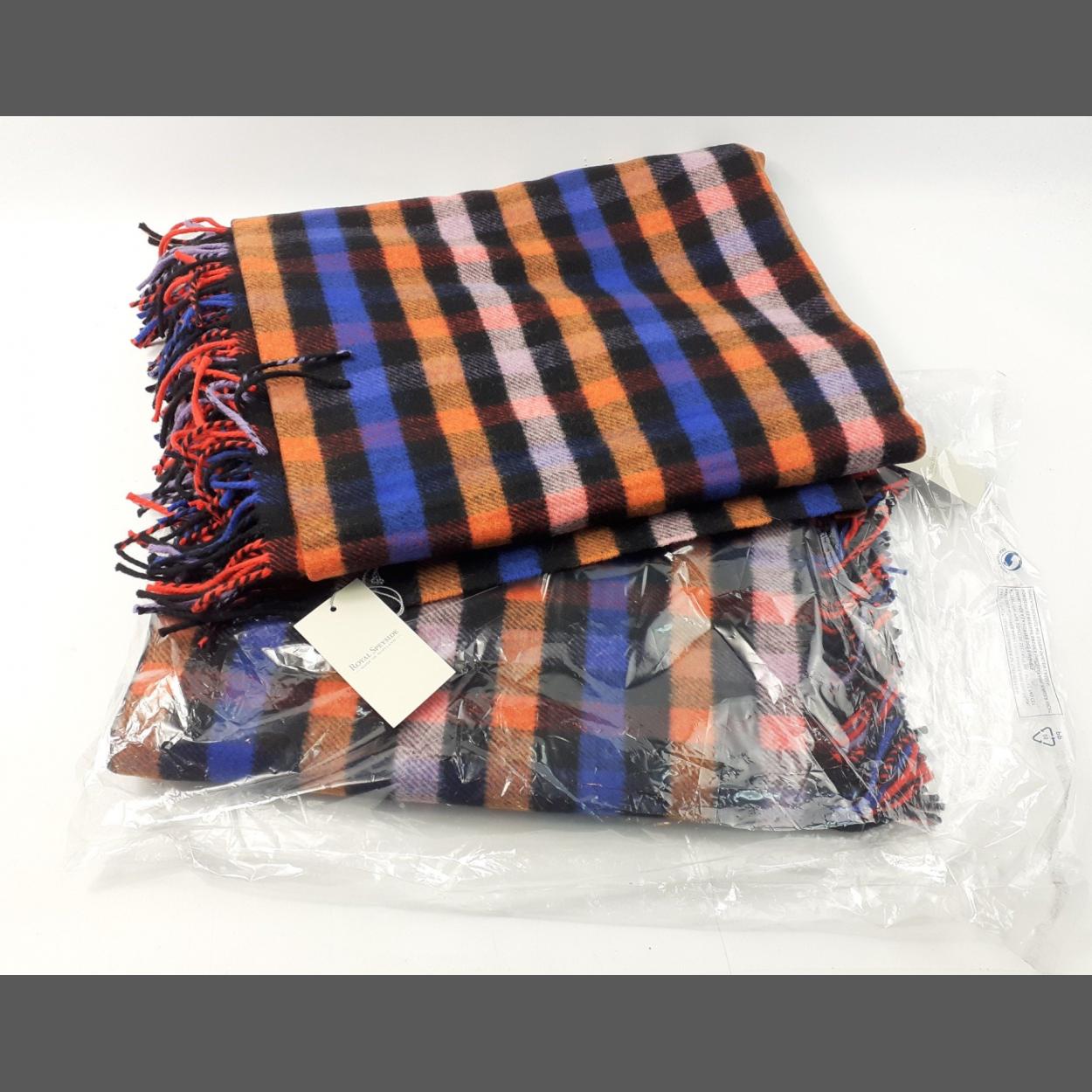 Two new, unused ROYAL SPEYSIDE, 100% LAMBSWOOL fringed throws 142x180cm approx plus 2 x 35" new satin scarves