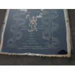 A commemorative military silk in very heavy huge Perspex frame (could be removed if required). KING'S OWN ROYAL REGIMENT, Norfolk Yeomanry 257th battery, 56th anti-tank regiment, 7th army division of the Desert Rats. Beautifully embroidered, WWI and WWII battle honours display piece 90 x 90cm approx. An amazing and possibly unique item.
