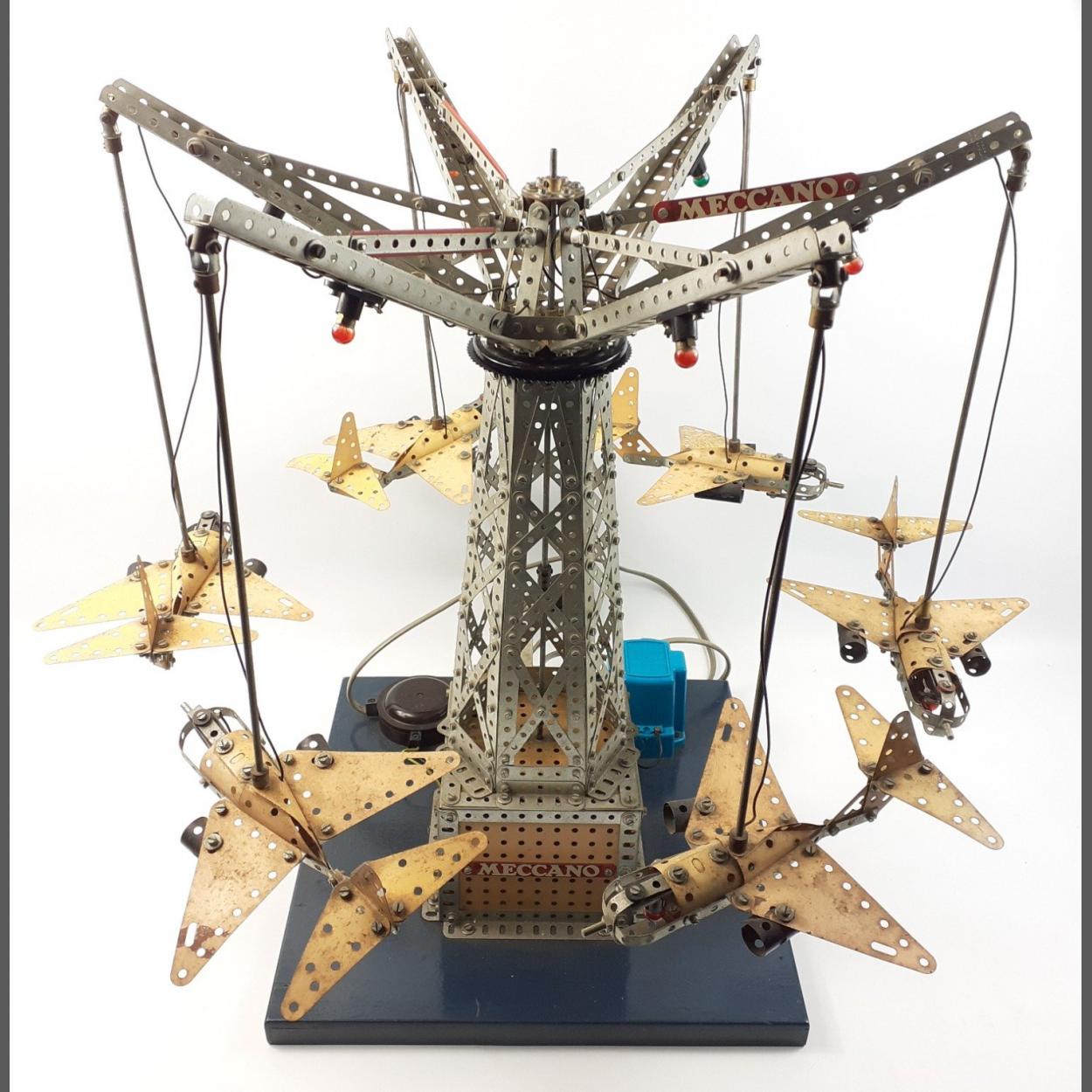 A large and impressive vintage original factory produced trade display model MECCANO jet aircraft carousel advertising piece originally from a Selkirk toy shop window. Recently rewired by the Repair Shop in Selkirk during the visit of King Charles who was greatly taken with the item.