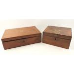 Two wooden boxes, one used as a sewing box 24x19x12cm and a writing slope in need of repair 35x23x10cm
