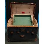 A large dome-topped trunk with 2 inner trays made by WH SMITH Practical Trunk and Bag Manufacturer, 80x54x60cm approx. Stamped E.M.W. on outside. Interior needs cleaning.