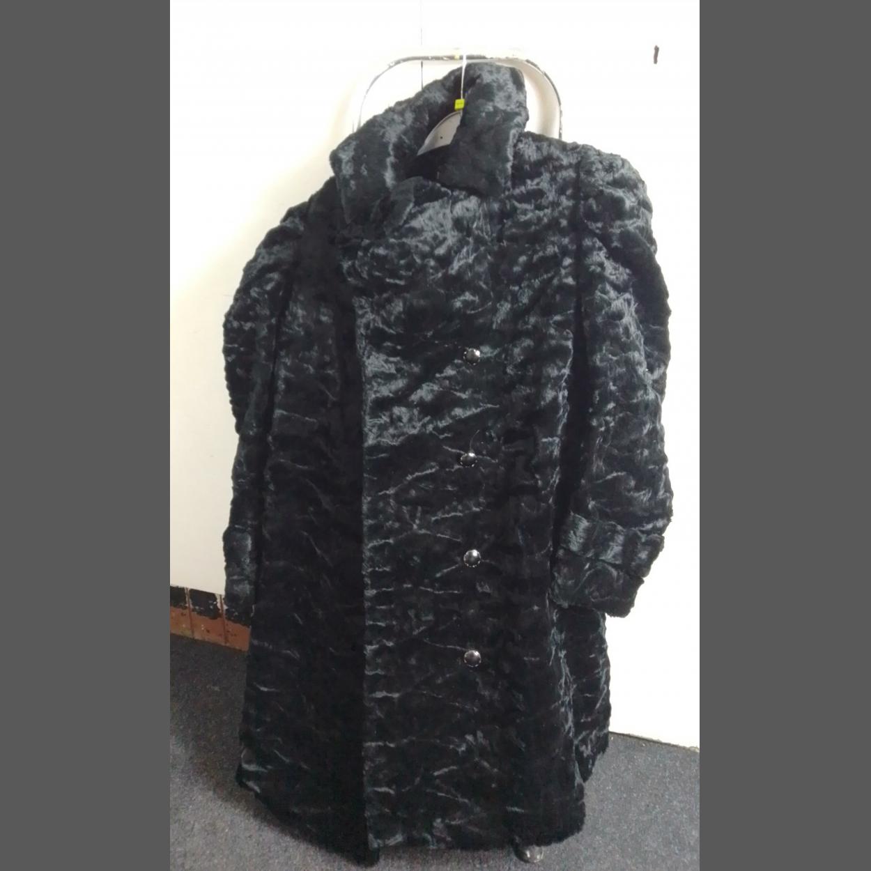 A ladies quality black fur coat, 35" long, chest 40" approx