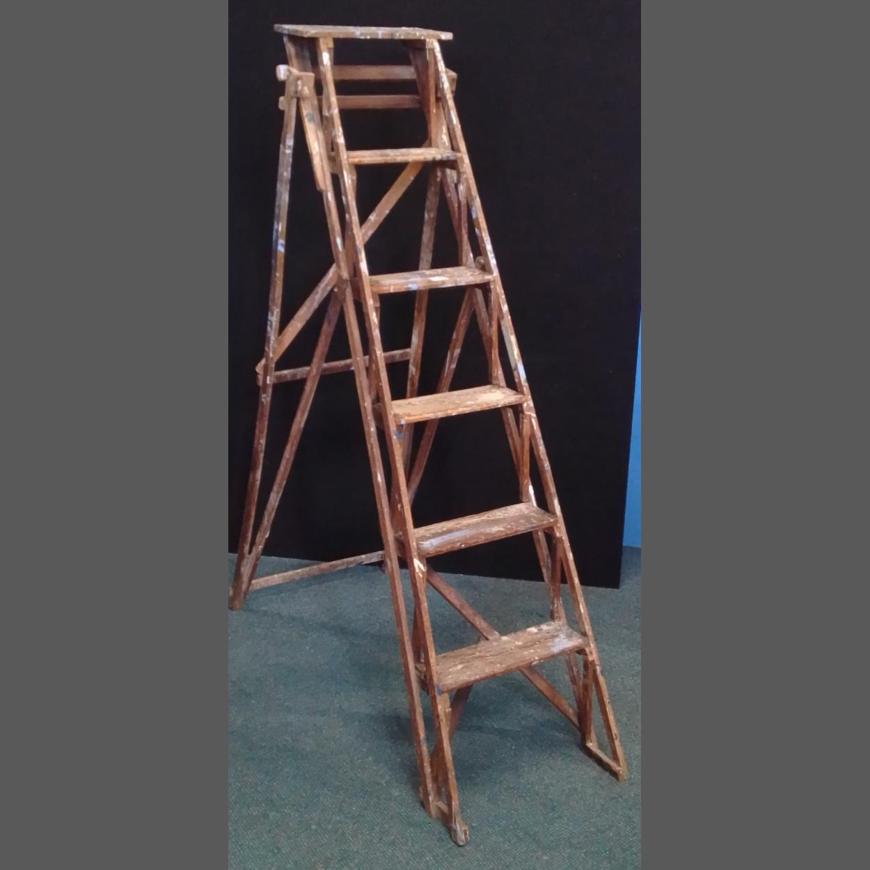 A well-used colourful wooden 6 step set of step ladders 1.70cm tall