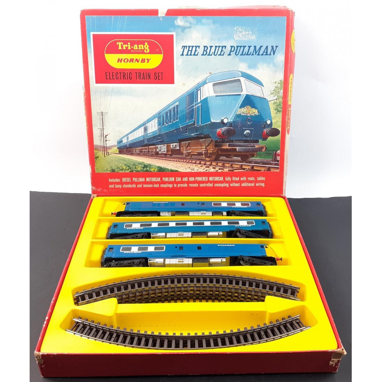 A TRI-ANG HORNBY blue Pullman 00 gauge train set in good condition. Comes with box in fair condition.