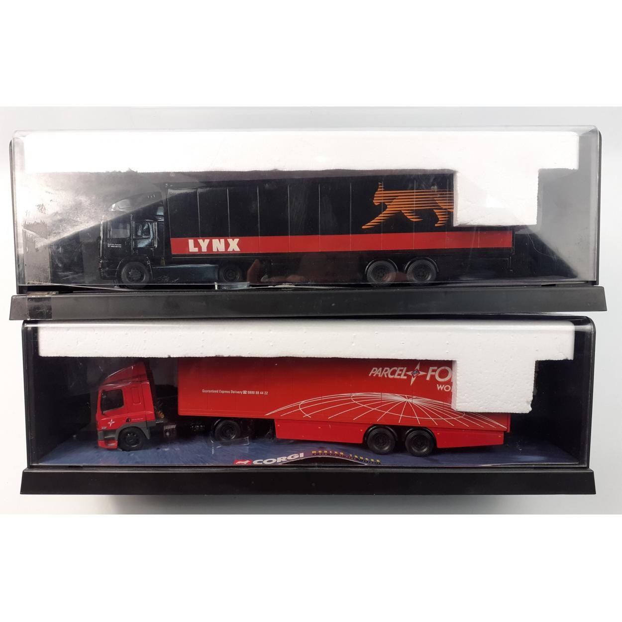A CORGI Modern Trucks 75001 ERFEC box trailer Lynx Express and also a 75501 Parcel Force in Perspex presentation boxes
