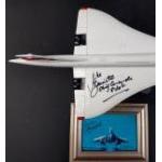 A signed pilot CONCORDE aeroplane model and accompanying limited edition (137/250) framed photograph signed in black marker pen by photographer ADRIAN MERIDETH showing Mike Bannister chief pilot actually piloting the plane! - pilot Mike Bannister - born May 1949 is an airline pilot. He is best known as the Chief Pilot of British Airways' Concorde fleet, a post which he held from 1995 until its withdrawal from service in 2003.