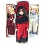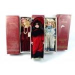 Three ALBERON COLLECTABLE DOLLS each 16" high, on stands. Dolls in good condition. Boxes with wear