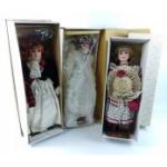 Three ALBERON COLLECTABLE DOLLS on stands including Vanessa (20"), Alexandra and Lorraine (21"). Dolls in good condition. Boxes with wear