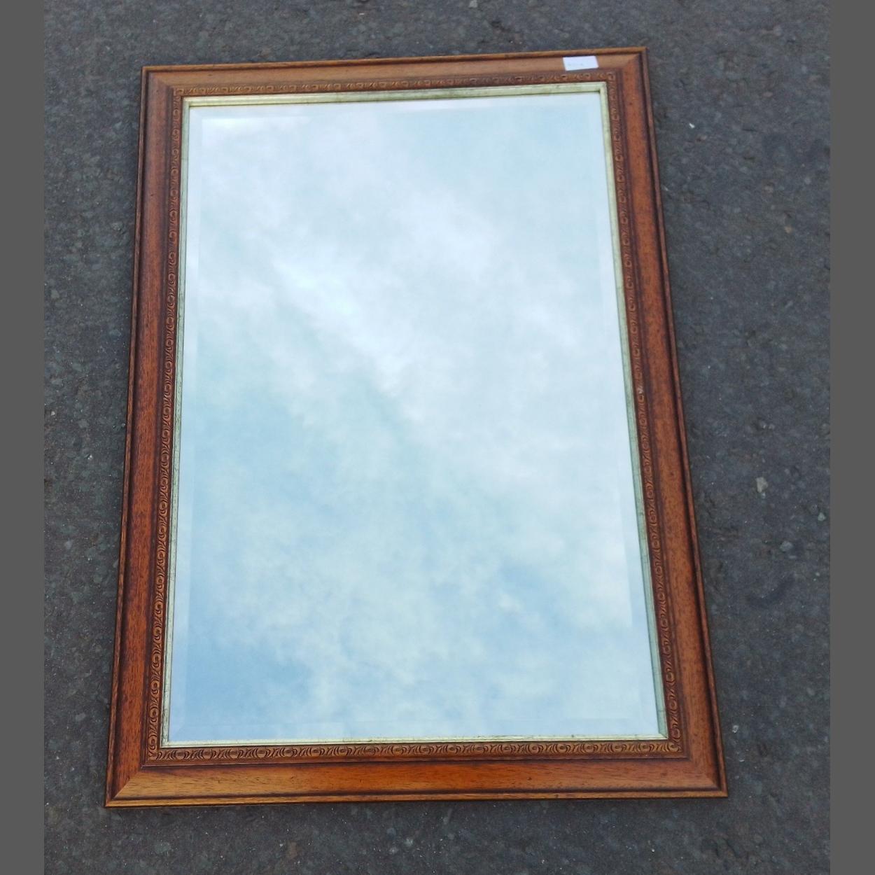 An attractive modern mirror with bevelled edge in attractive aged oak frame size 86x61cm approx