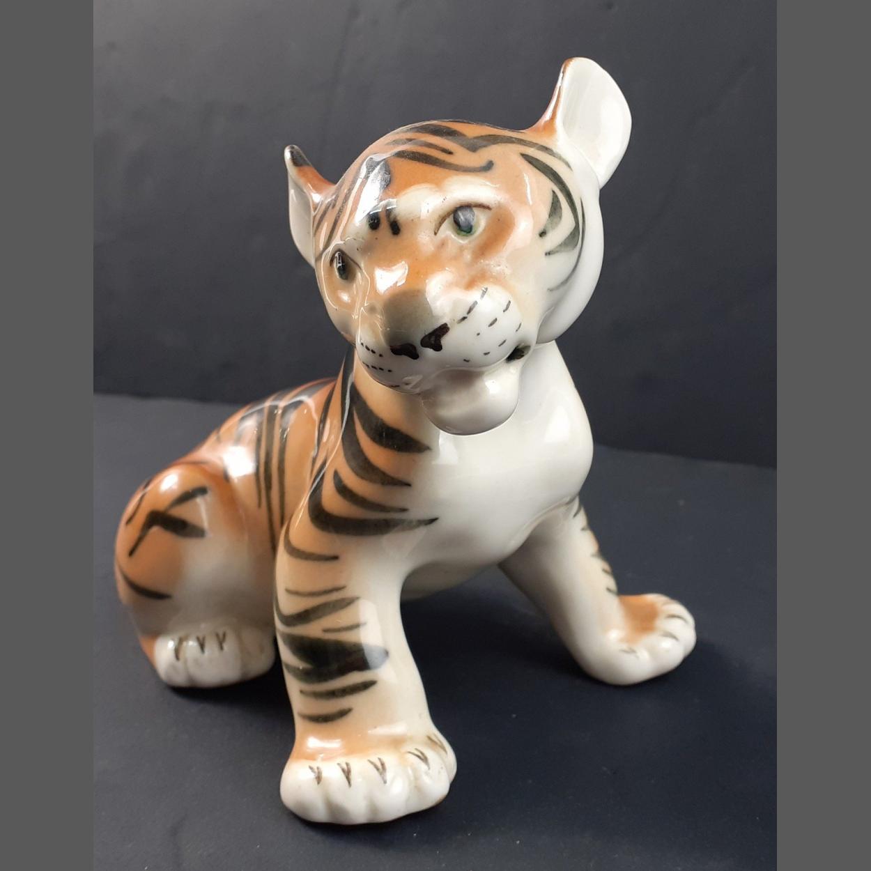 Back in the USSR - a lovely wee vintage Lomonosov tiger cub with red USSR stamp to the sole, W13cm x H13cm, no damage