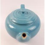 A large round teal LE CREUSET teapot, appears unused. Stands approx 15cm tall