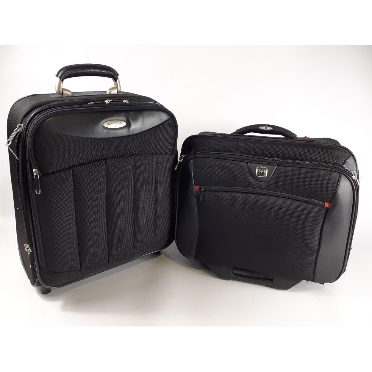 A WEGNER rolling travel bag with laptop smartpack pouch, and a SAMSONITE flight case. Both in good order