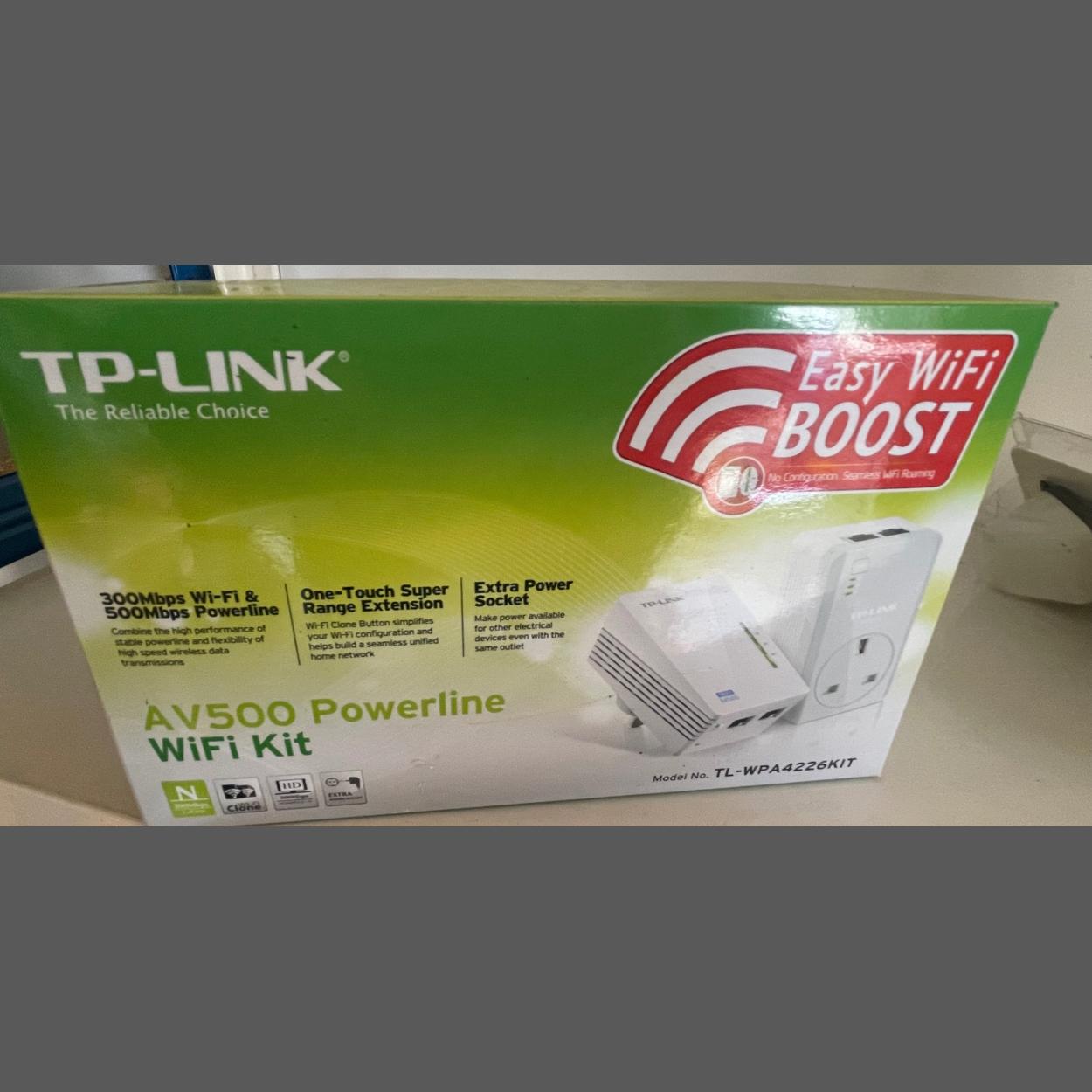 A TP-LINK branded AV500 Powerline WiFi Kit with easy WiFi boost - still in its original box