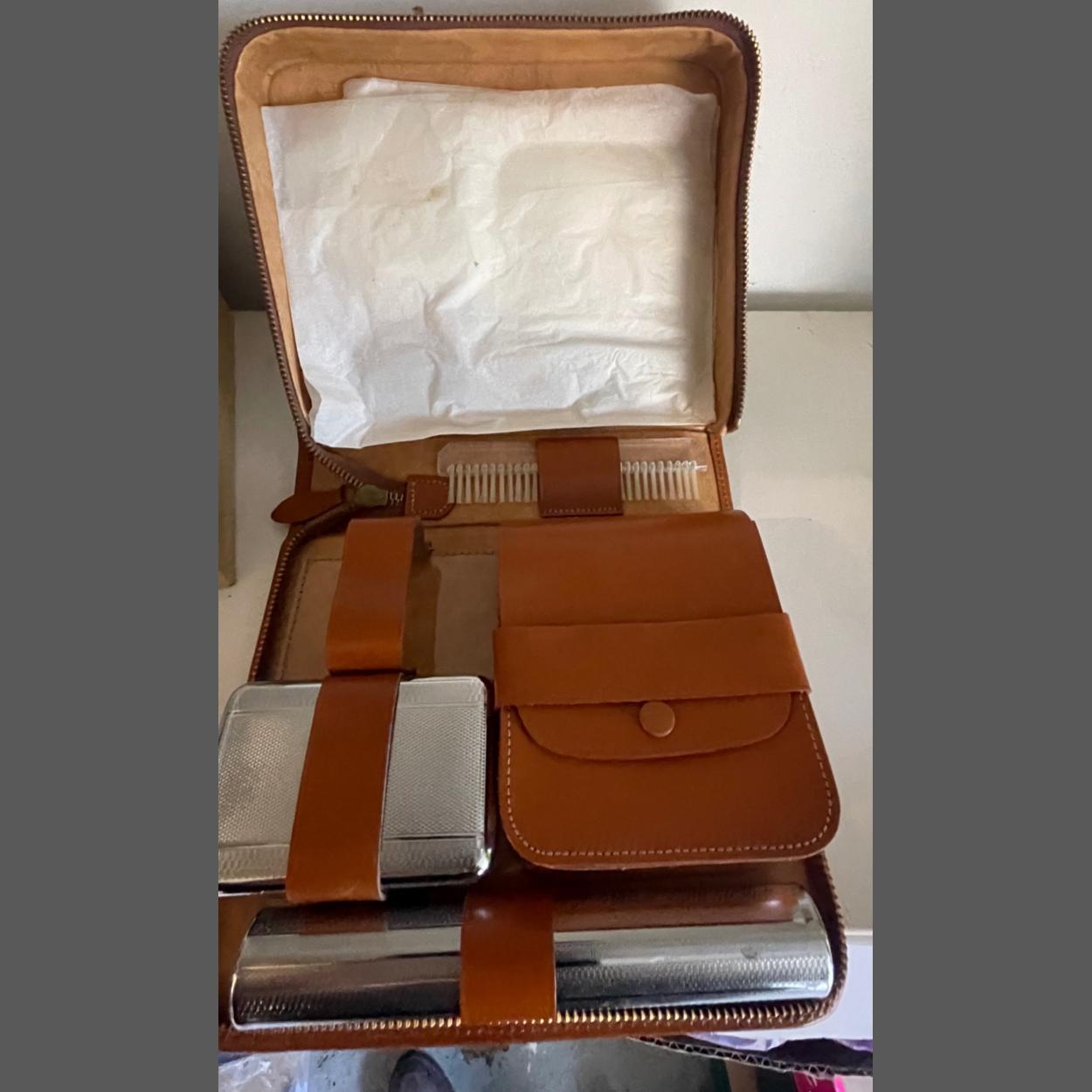 NICE QUALITY! A lovely light brown leather-zipped travelling case - in lovely as new condition