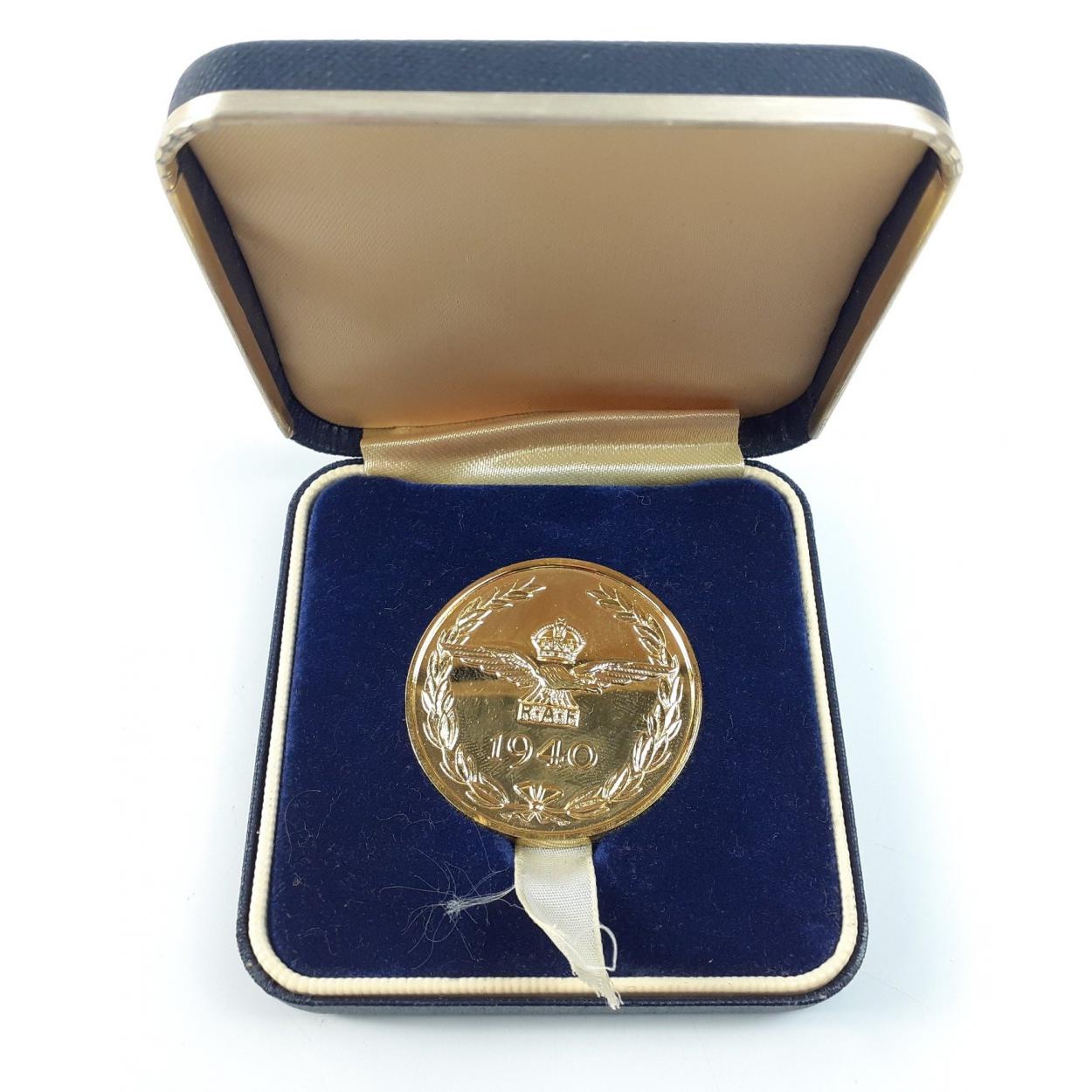 A cased RAF 50th anniversary of the Battle of Britain commemorative plated coin