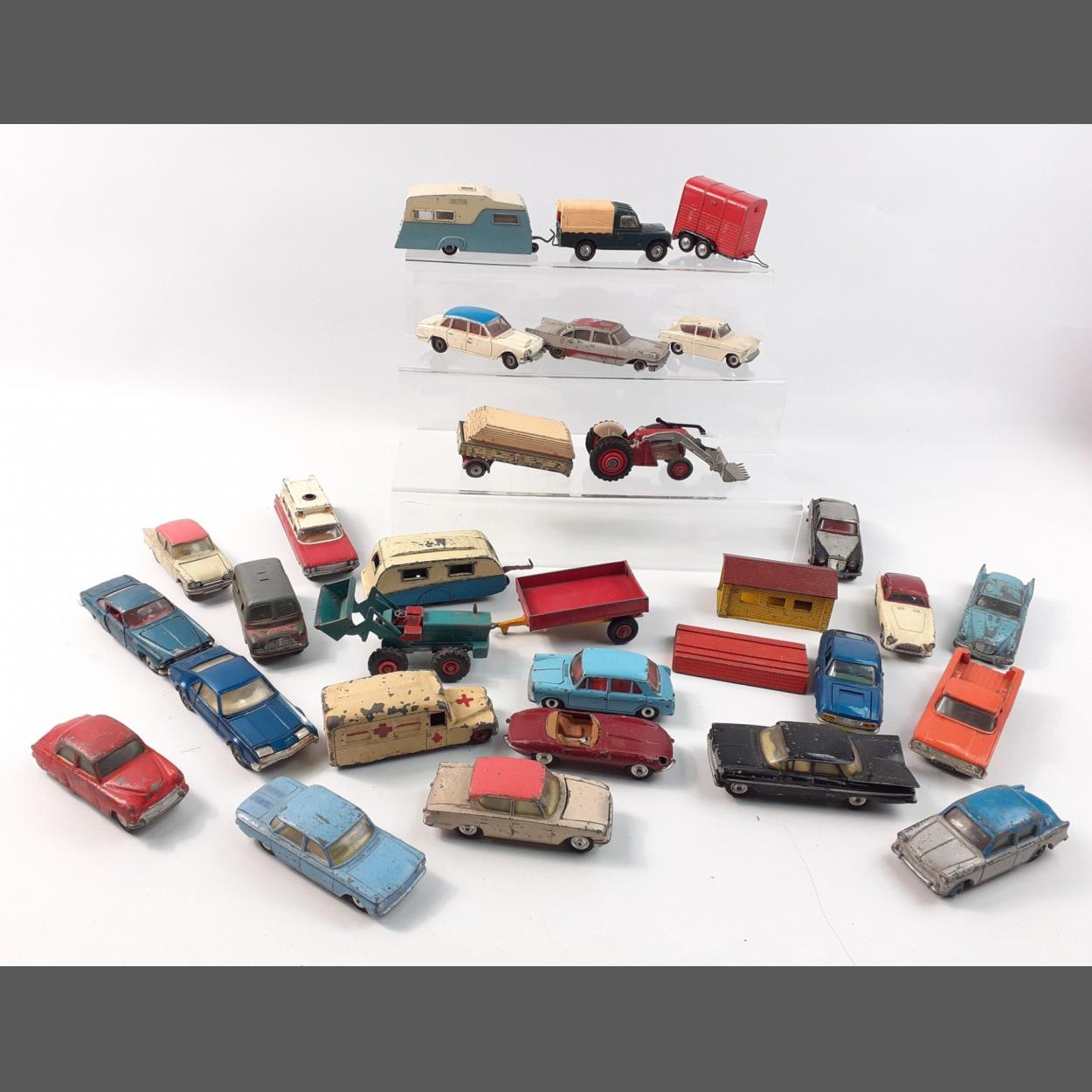A super selection of playworn CORGIS to include a STUDEBAKER, GOLDEN HAWK, GHIA L6, SUPERIOR AMBULANCE, FORD CONSUL x 2, OLDSMOBILE TORNADO, CHEVROLET IMPALA, LANCIA FLUVIA, and much else including DINKYS