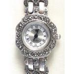 A ladies quartz cocktail watch with Japanese movement in marcasite bracelet with silver hallmarked clasp.