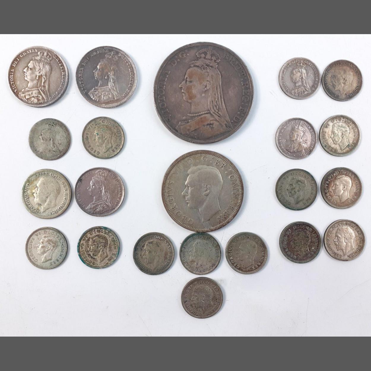 A small collection of pre-1947 coinage to include some Victorian weight 80.5g approx. Some in good condition
