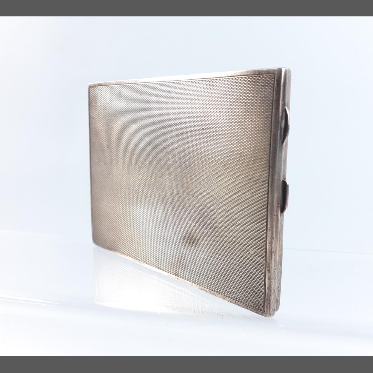 An attractive silver, hallmarked for Birmingham, engine turned cigarette case, weighs 157g approx. with an etched 1946 inscription. In good order.