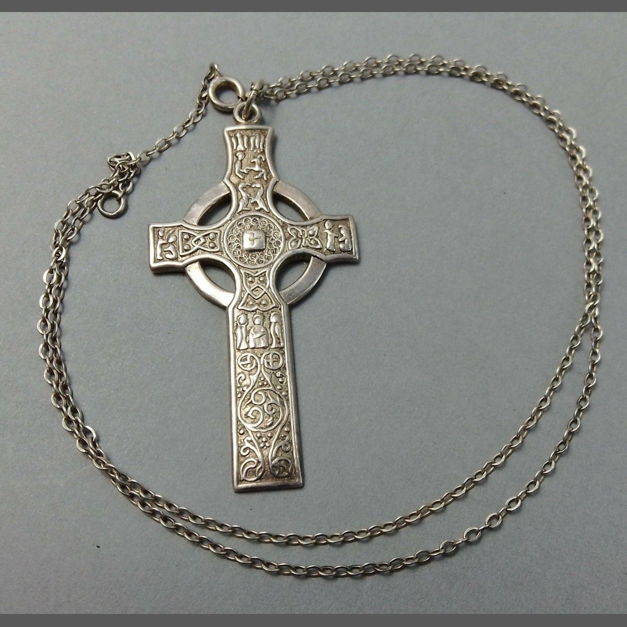 A beautiful Celtic cross pendant (5cm long approx), with an Edinburgh hallmark and a small italic c maker's mark SMD, on a chain marked sterling, weight 10.7g approx