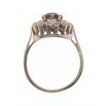 A 9ct stamped gold ring with red stone and 8 surrounding pearls, size P, gross weight 3.3g approx