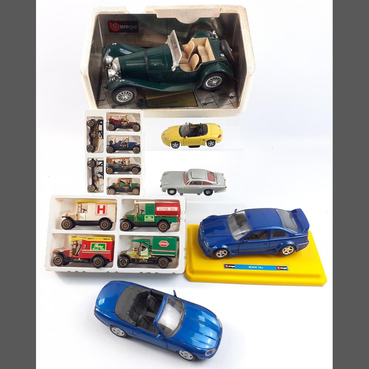 A small collection of diecast models to include a BURAGO Jaguar SS100, a modern CORGI Aston Martin DB5 with baddie in place and others