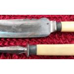 A carving set by John Anderson with silver collars hallmarked for Sheffield. Steel missing in presentation box with detached lid