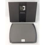 From THE JUST SLATE COMPANY an unused, very attractive slate cheese board with antler handles in original gift presentation box, 35cm width approx