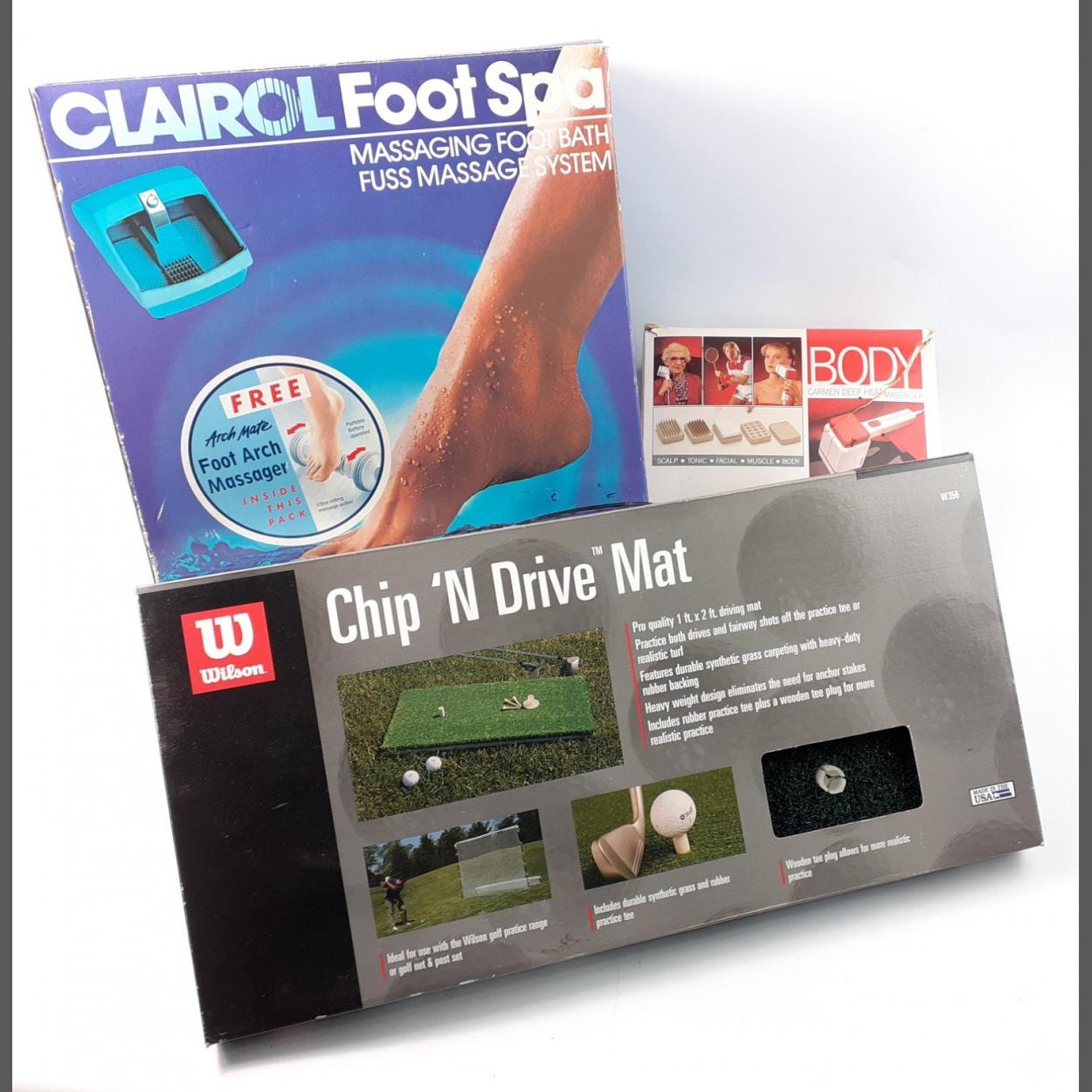 A mixed lot to include a CLAIROL foot spa in box, a CARMEN body massager, a Chip 'N Drive mat,