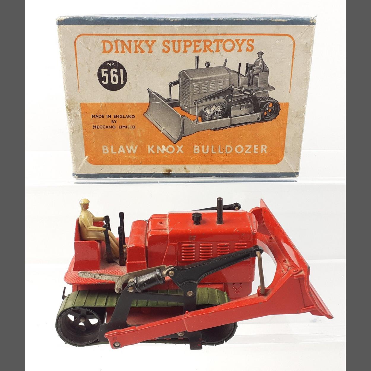 A boxed DINKY SUPERTOYS 561Blaw Knox Bulldozer, one track is broken otherwise excellent condition