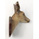 A taxidermy antelope head mounted on a wooden shield. Head measures approx 35cm, shield 22x16cm approx. Some damage to the ears but otherwise in good condition