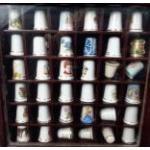 Two small wall display cases containing over 40 collectable thimbles