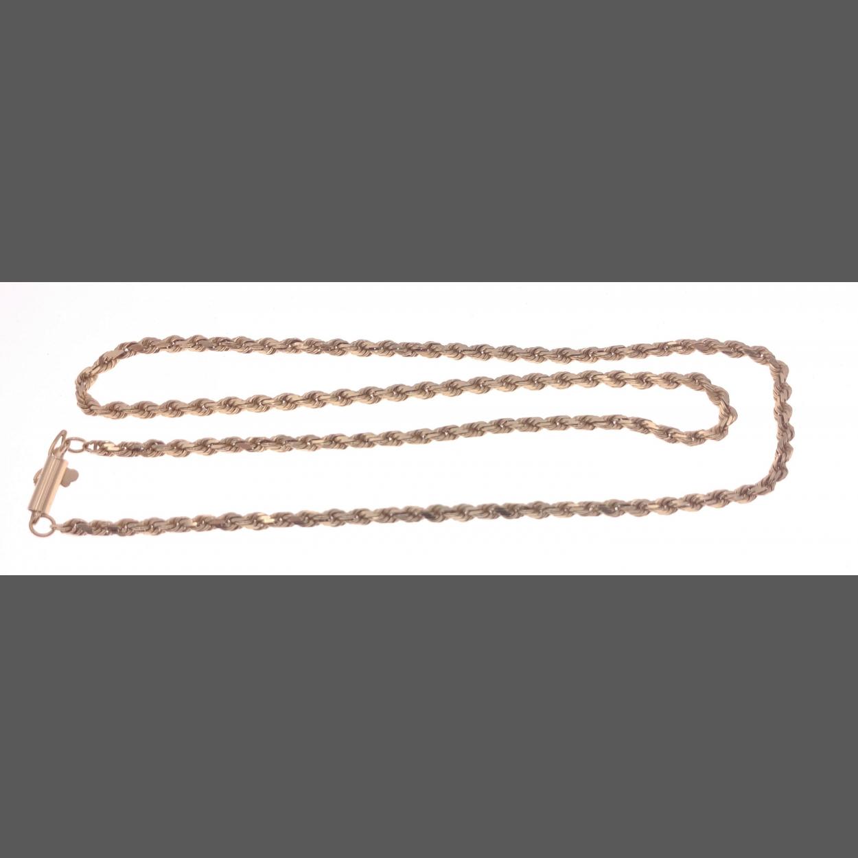 A 46cm long gold rope chain stamped 14K to clasp, weighs 12.9g
