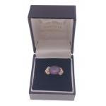 A stunning 375 fully hallmarked ring set with 10 small shoulder diamonds and a navette cut light amethyst coloured stone. Size N, gross weight 3.74g approx