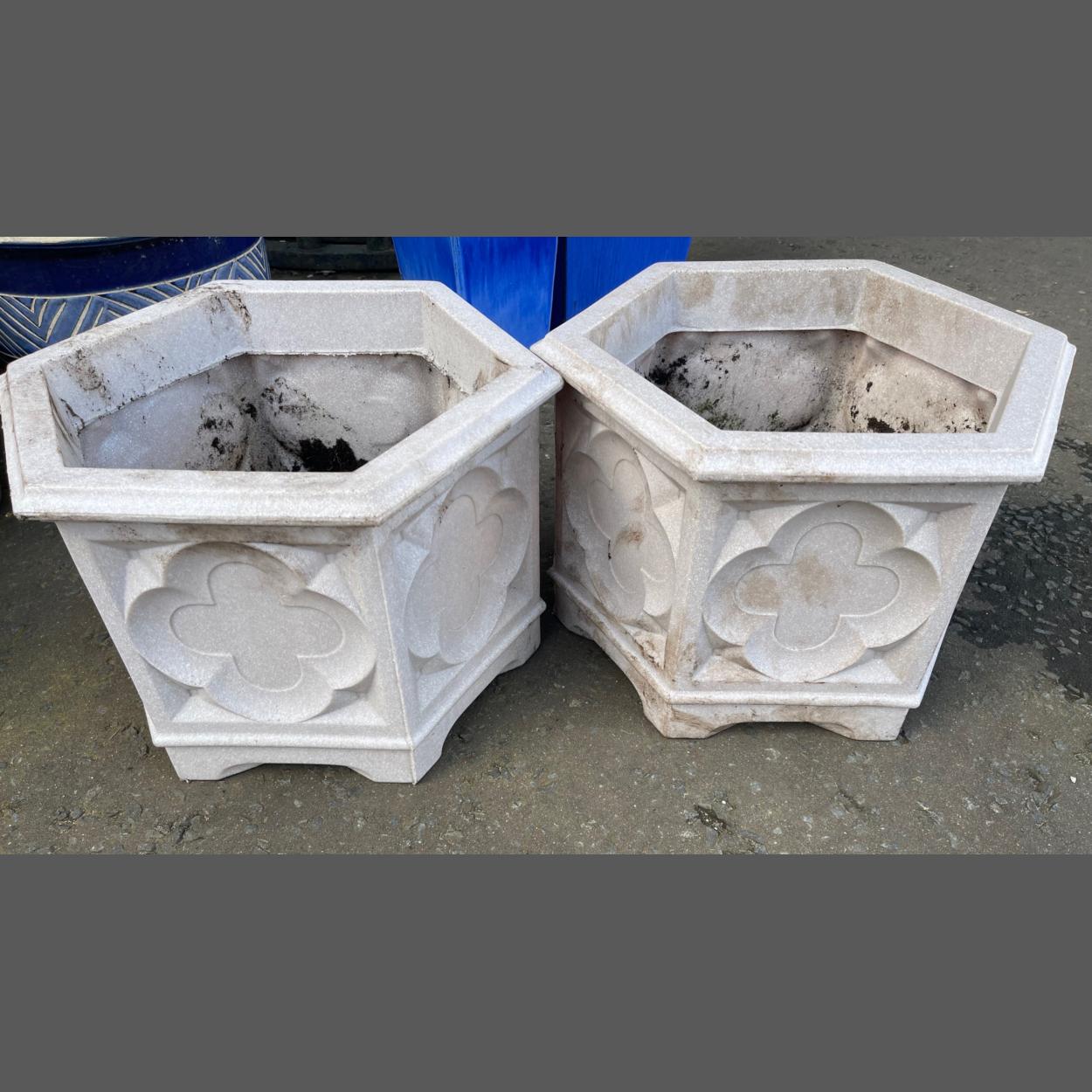 A pair of appealing resin garden planters dimensions 30cm height x 35cm diameter approx