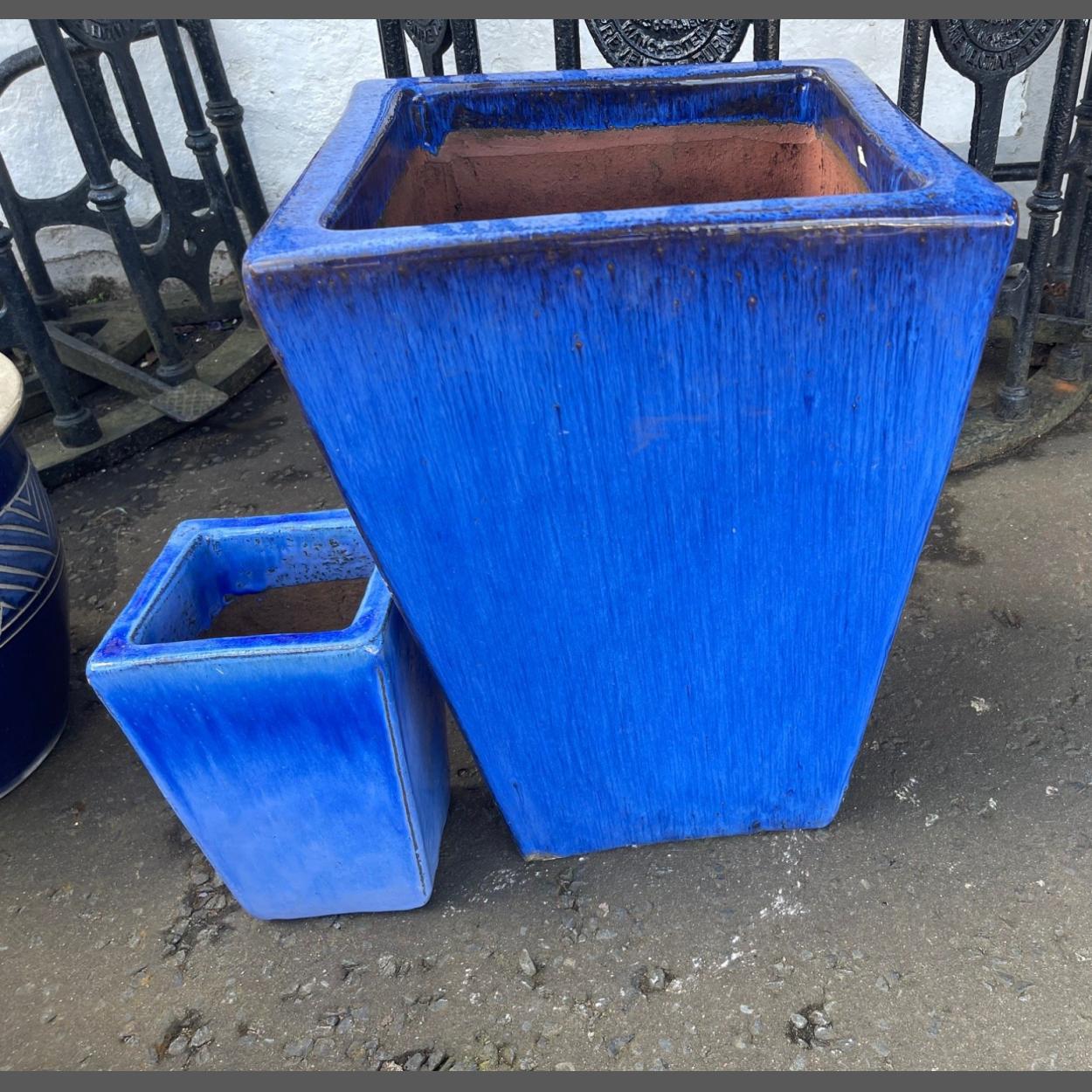 A HUGE FEATURE ceramic frost-free square tapered garden planter with a baby one to accompany it! - dimensions of the larger one 18" height x 1ft square top approx - starting bid £30