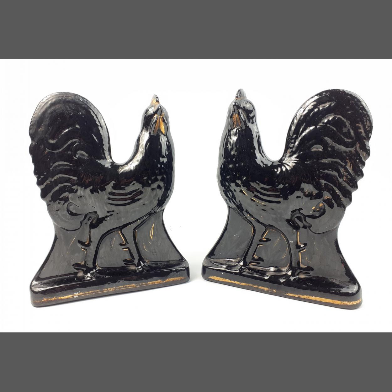 EARY VICTORIAN - An impressive pair of black cockerels with gold highlights each standing 30cm tall