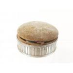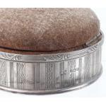 An ANTIQUE pin cushion with silver ring by MAPPIN & WEBB hallmarked, London 1909, weighing approx 39.6g approx, with contents, approx 8cm diameter