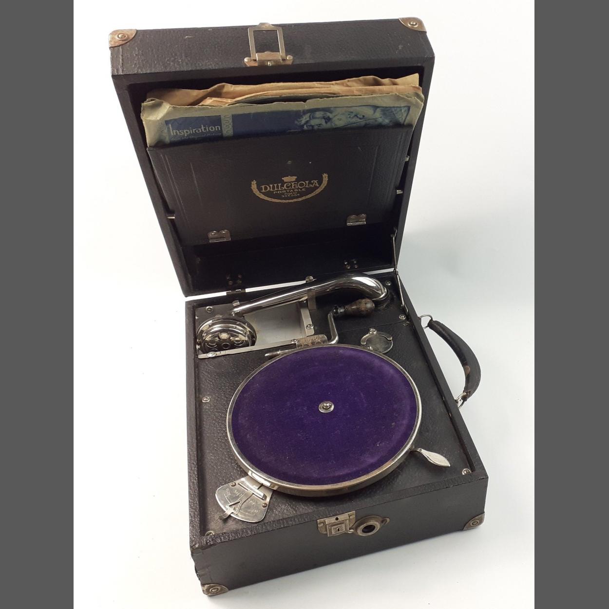 A DULCEOLA portable gramophone reg 347.554. Appears to be in good condition