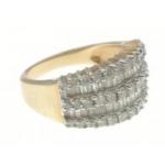DIAMONDS FOREVER! A 375 stamped ring with a substantial number of diamonds (tested) - 3 rows of 39 small round diamonds separated by two rows of baguette diamonds