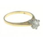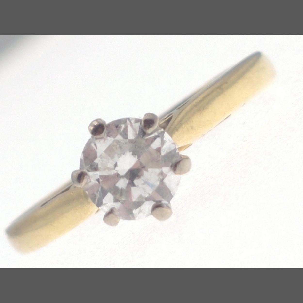 A 750 stamped gold ring with a beautiful 5mm approx (tested) diamond size N, gross weight 2.35g approx